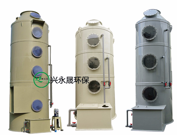 立式洗滌塔的工作原理為氣液兩相立逆接觸,廢氣通過填料層段液相接觸吸收中和,從而達到廢氣凈化效果。單體塔中填料層可分為單層或多層。