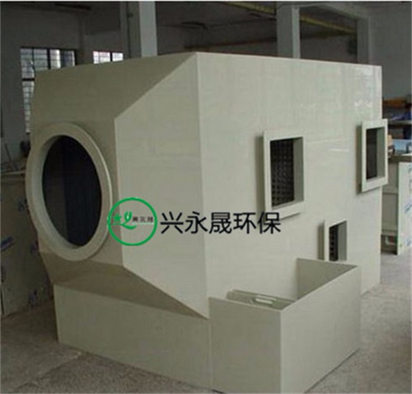 水噴淋凈化設備依據不同廢氣成分的化學性質,選擇針對性的吸收液,吸收液由循環水泵從循環水箱中吸取并送至塔內,通過噴頭均勻的噴淋到填料層中形成氣液傳質液膜層,吸收液隨重力作用沿填料層向下流動直至塔底循環使用。由于上升氣流和下降吸收劑在填料層中不斷接觸,所以上升氣流中溶質的濃度越來越低,在塔體最頂部設置有波紋板,當含有較多水霧的氣體進入除霧層中,分子較大的水霧撞擊波紋板后形成水滴,從而達到除霧效果。潔凈的氣體最終通過排氣筒達標排放。